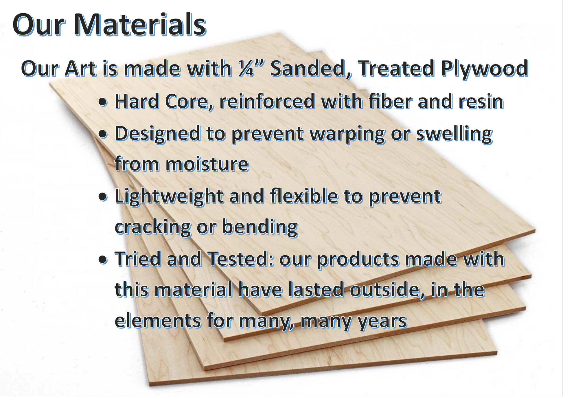 Made of high-quality sanded IntegryPly wood and painted with care. Sealed with outdoor paint and durable polyacrylic