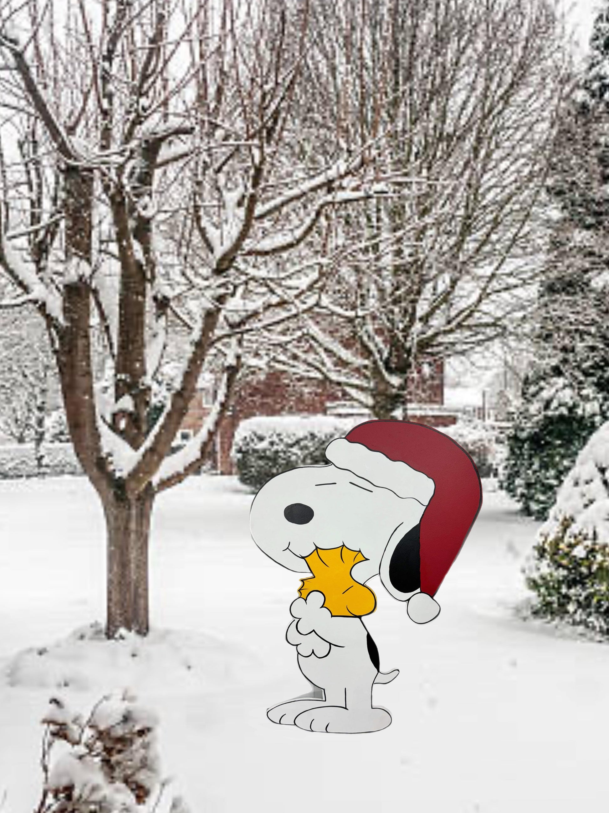 Hand Painted Wood Yard Art - Santa Snoopy Peanuts with Woodstock - Outdoor Lawn Decoration