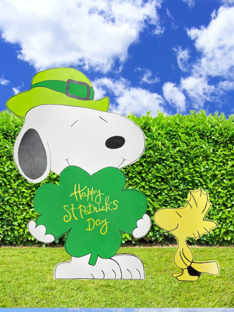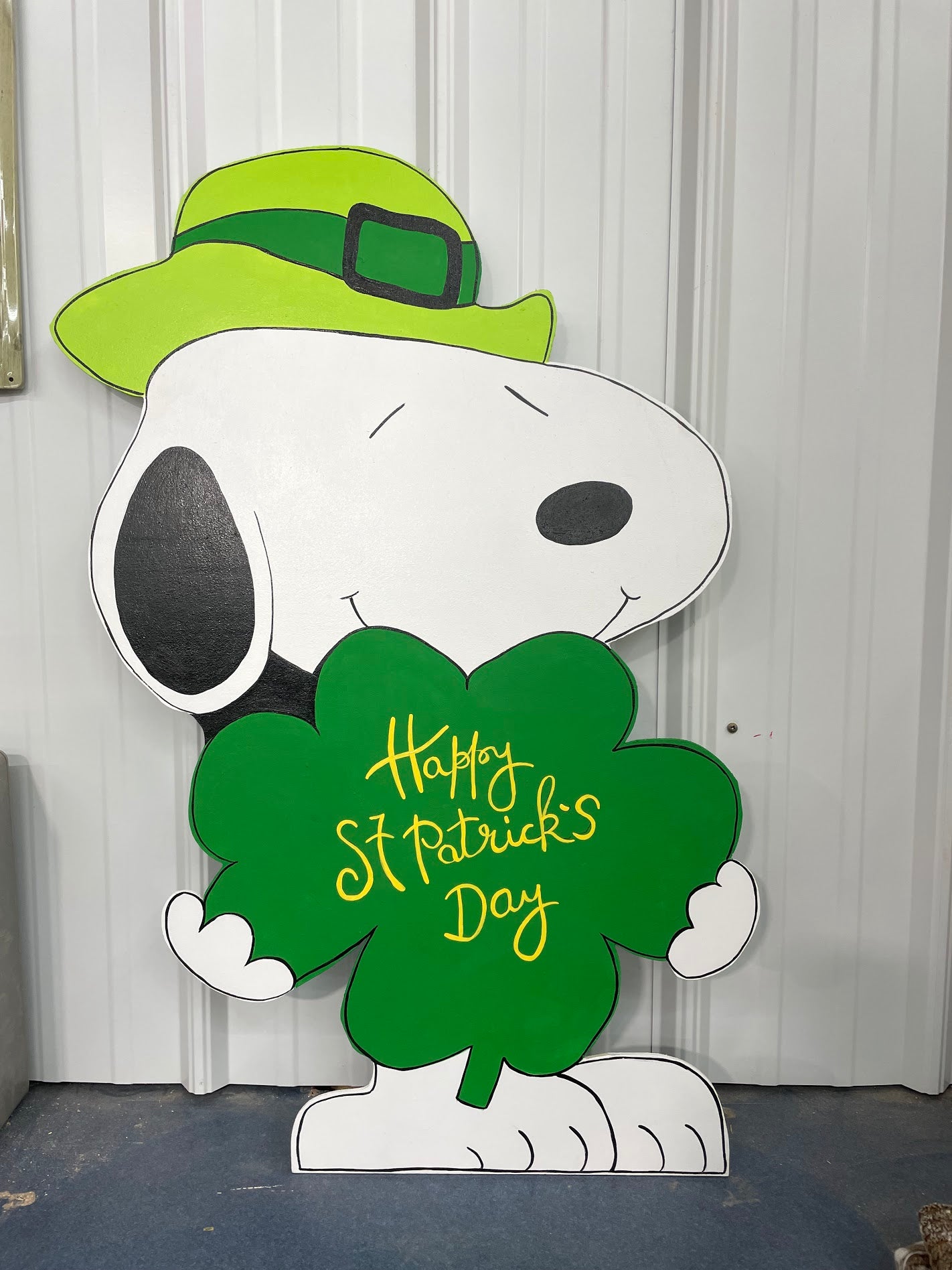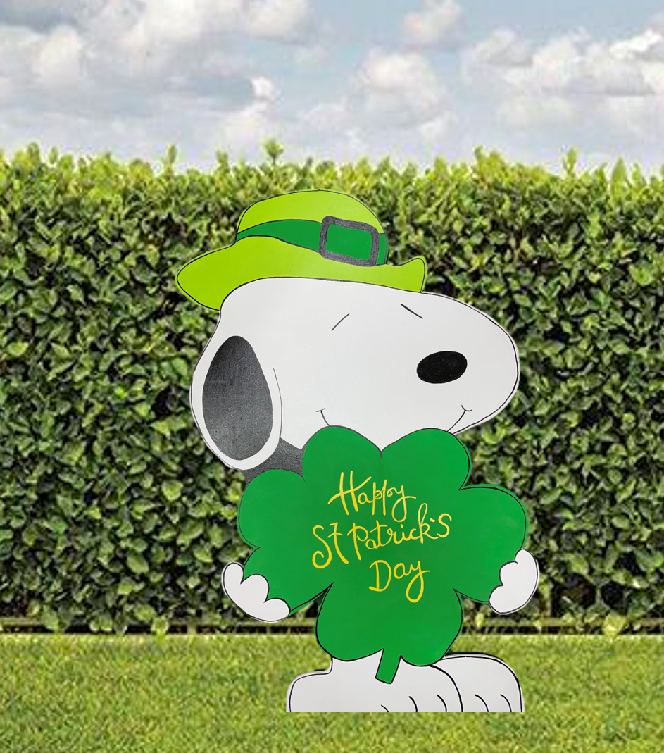 Hand Painted Wood Yard Art - St. Patrick's Day Leprechaun Snoopy - Outdoor Lawn Decoration