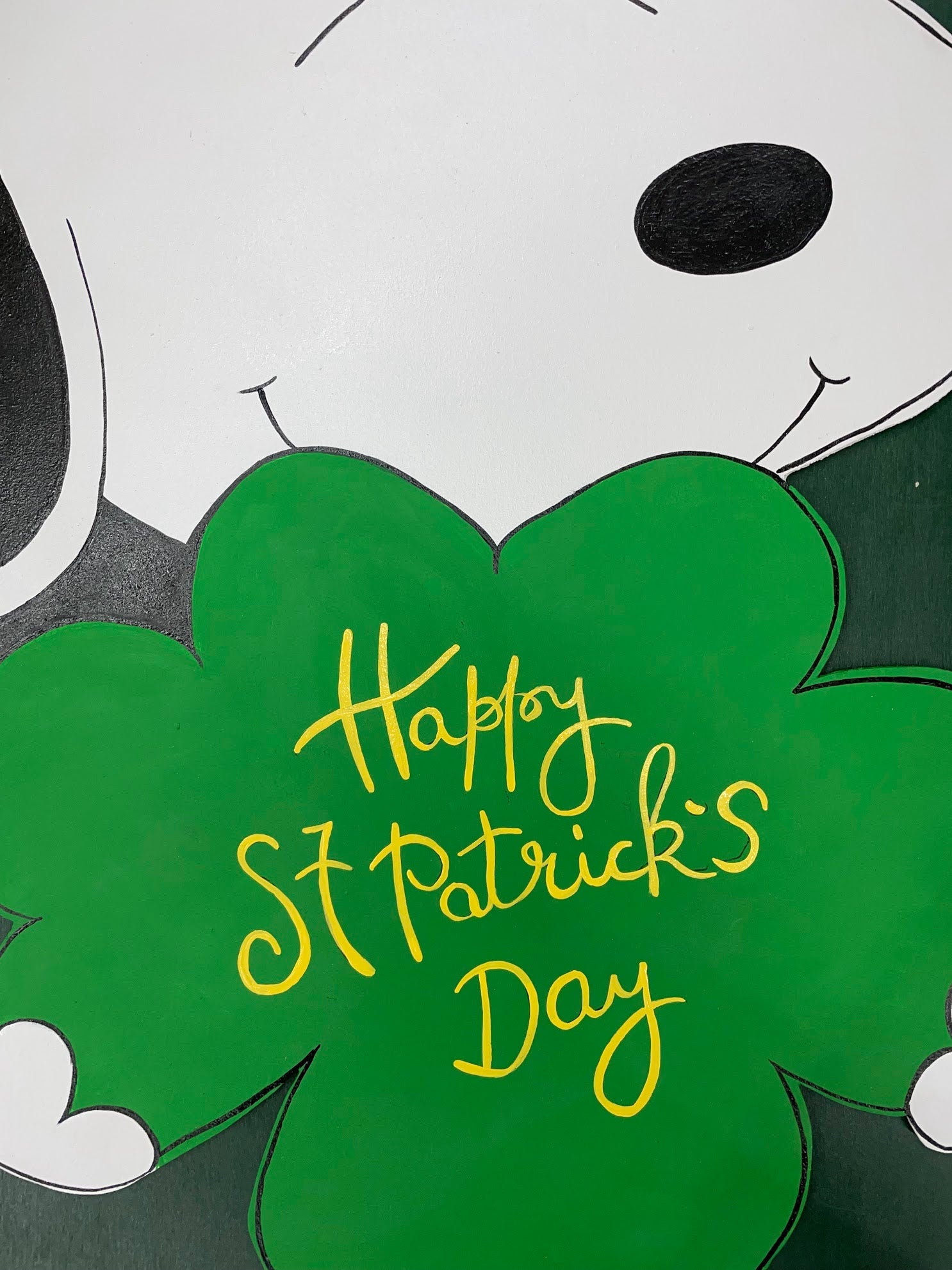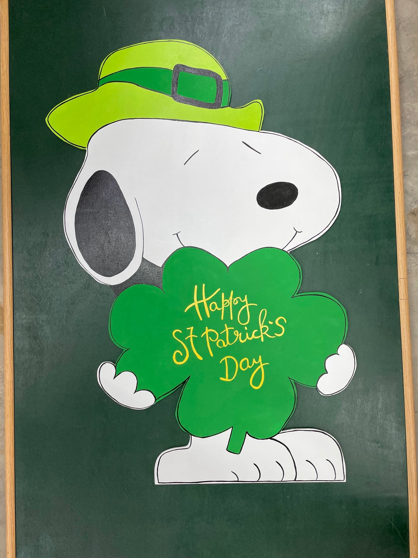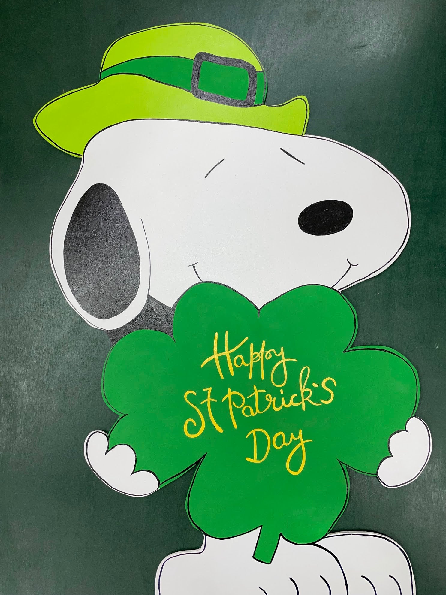 Hand Painted Wood Yard Art - St. Patrick's Day Leprechaun Snoopy - Outdoor Lawn Decoration